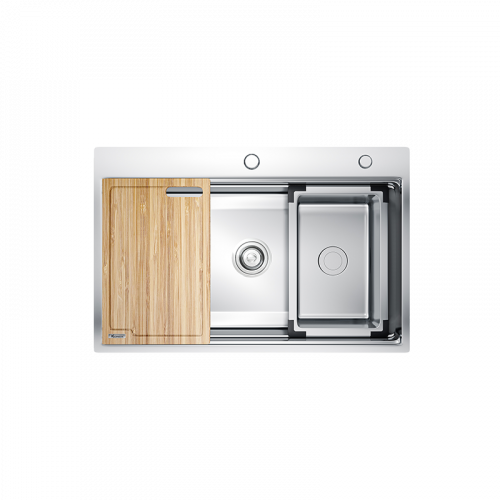 - Dòng chậu hạ bậc – tích hợp công năng: thớt gỗ, chậu rửa nhỏ